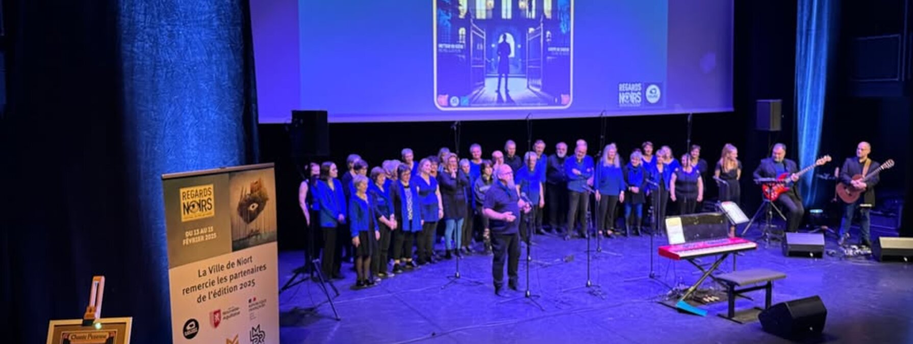 [Festival du polar, Regards Noirs] EnquĂȘte...de vĂ©ritĂ©s par la chorale Chante-Pezenne ce matin au Moulin du Roc - ScĂšne nationale Ă Niort pour ouvrir la derniĂšre journĂ©e du festival. Elle a interprĂȘtĂ© des extraits d'une comĂ©die musicale actuellement en crĂ©ation. A retrouver bientĂŽt Ă Niort.